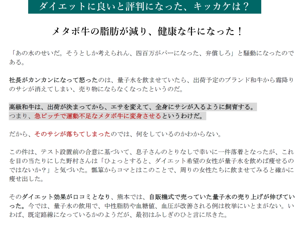 また、量子水はのど越しが普通の水より良い、大量に飲んでもタプタプ感がありません。