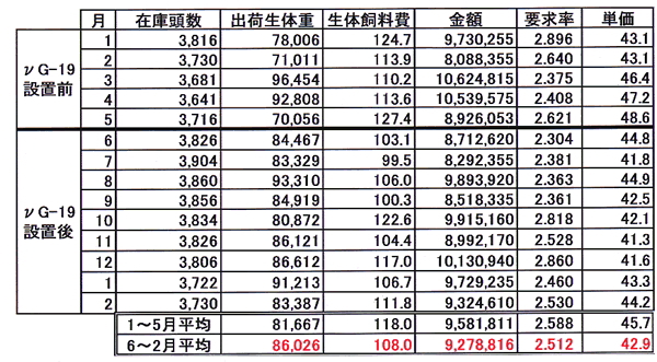 現在に至るまで私自身、水についていろいろ勉強してきましたが、数字として捉えられるほどに成績に変化が出たのは「νG7」だけでした。 もちろん、私たちも基本の管理を徹底していますので、νG7と私たちの管理が相乗効果をもたらしていると捉えています。
