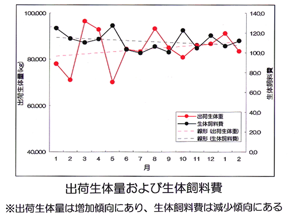 農場飼料要求率が前年の3.14から2.9に改善、1日あたり増体重が750gになり、肥育期間が10日~2週間短縮しました。 いかに少ないコストで成長させるかという経営上の問題が素晴らしく改善できて喜んでいます。