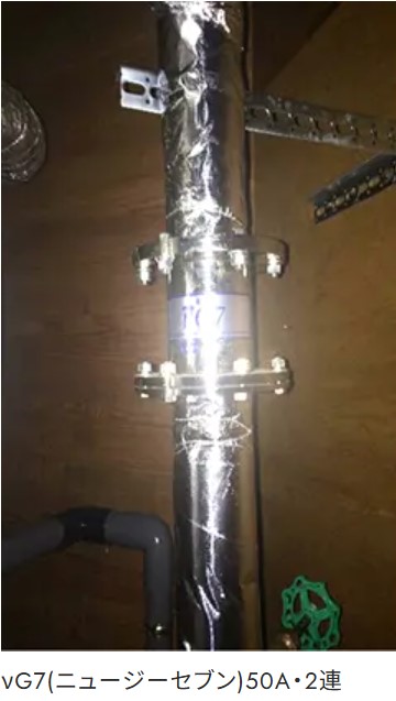 平成26年2月に温泉の水質検査の結果、レジオネラ菌が最高で170 cfu/100mL検出され、改善が求められた。その後、平成26年7月にνG7(ニュージーセブン)50A・2連を設置。温泉をフィルターを通してνG7(ニュージーセブン)に流しみ運用を開始。